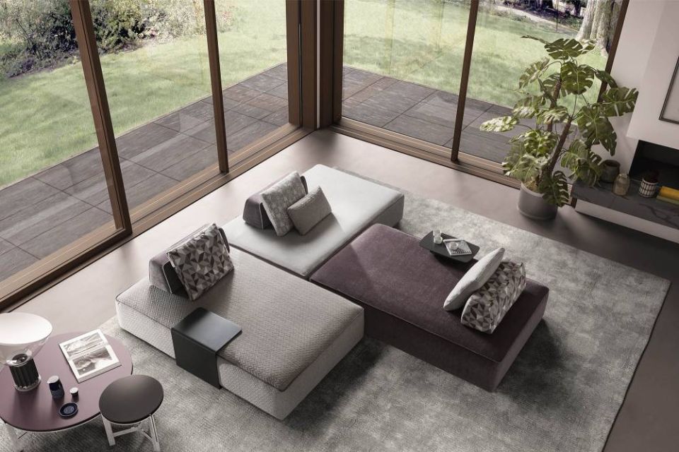 Una combinazione di suggestioni compositive che si adatta ad arredare gli ambienti con spirito dinamico e contemporaneo