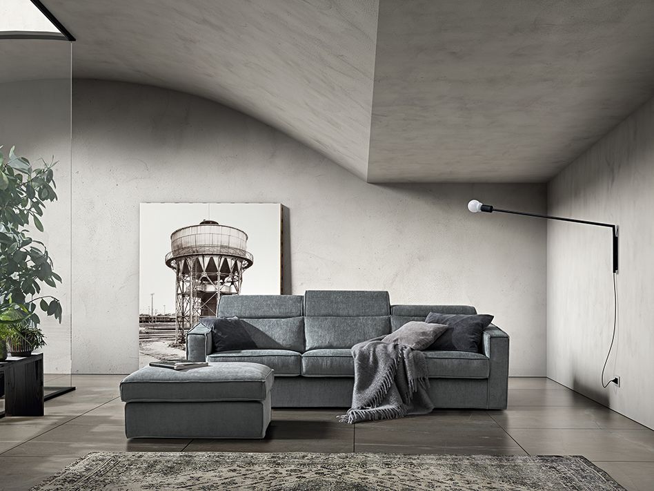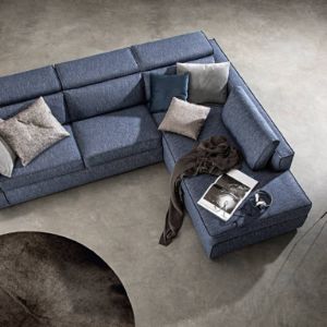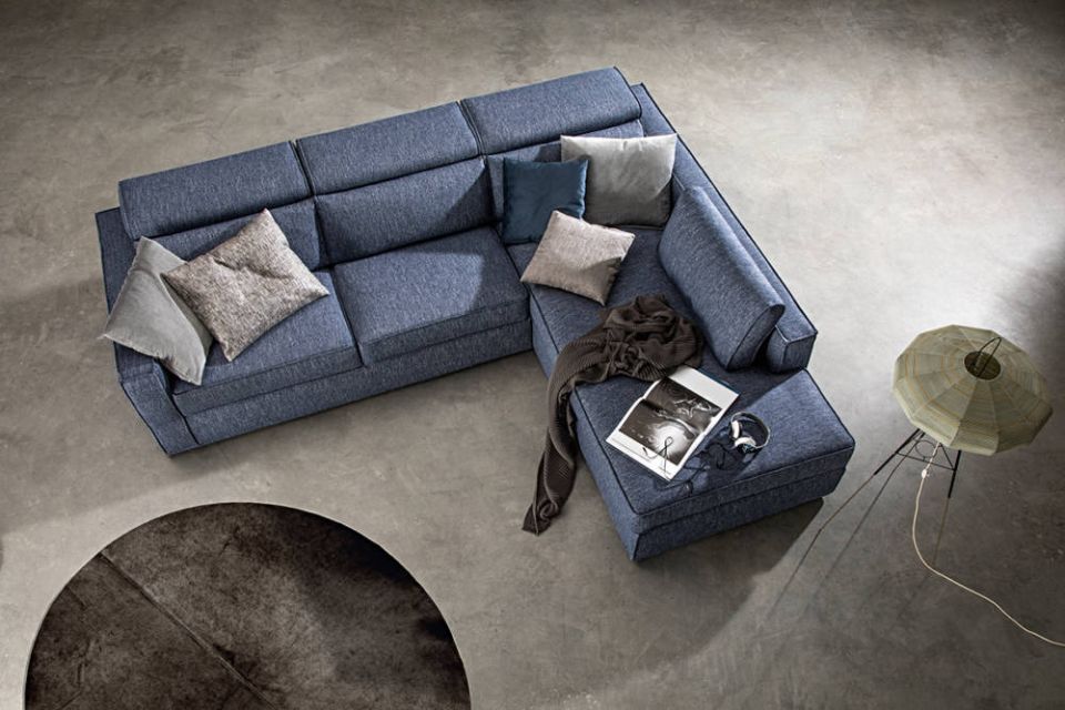 Particolare bracciolo inclinato, cucitura vintage che disegna la forma, avvolgente cuscino lombare in misto piuma abbinato al poggiatesta, sono i tratti distintivi di un divano unico