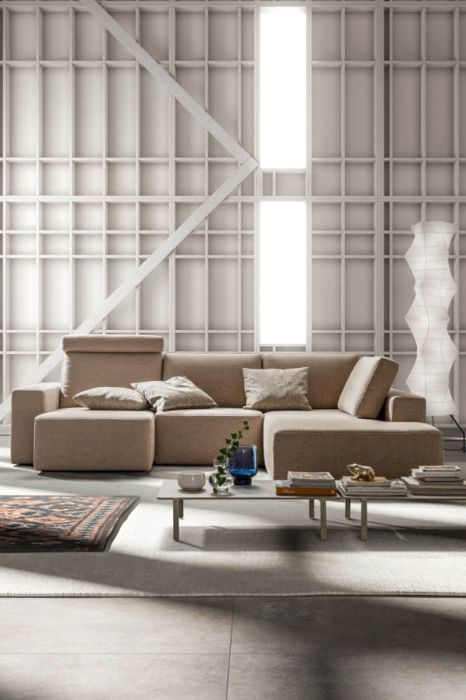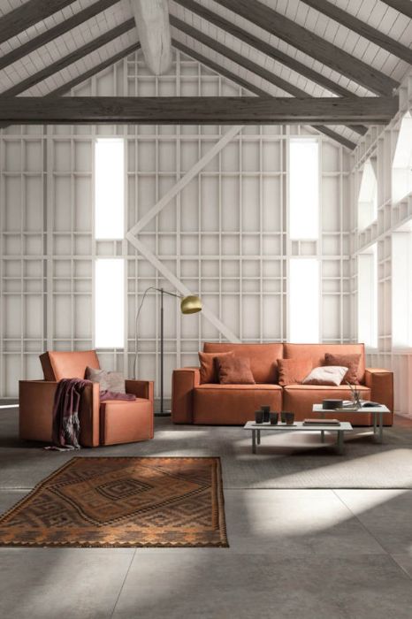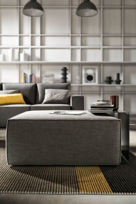 Mono è un divano caratterizzato da forme rigorose che lasciano spazio alla creatività attraverso la personalizzazione delle finiture